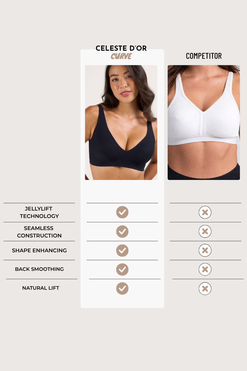 Featuring innovative Jelly Technology for 360° support and natural shaping — without the digging or discomfort of traditional underwires.